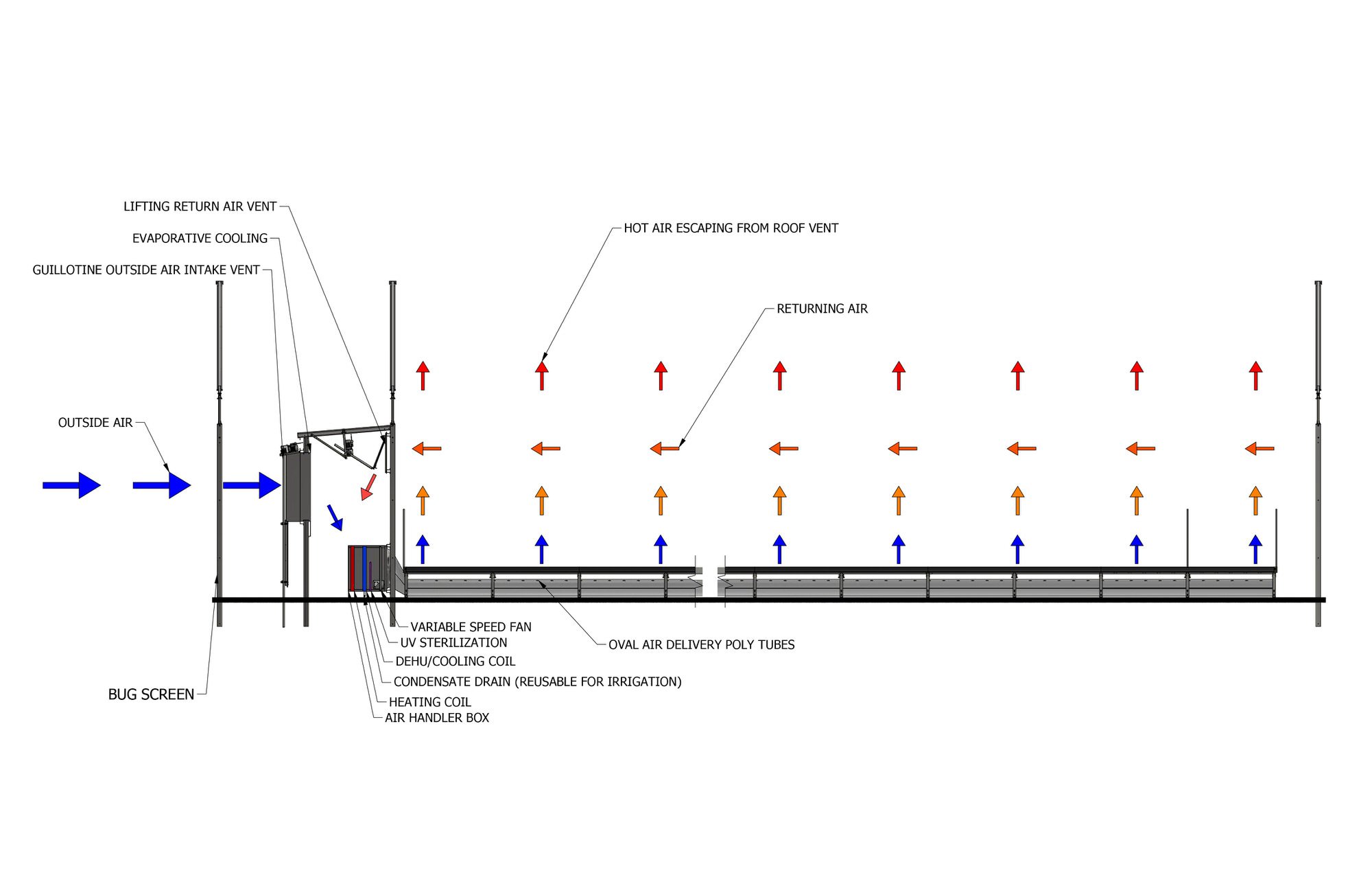 The Next G3n ECO (Efficient Climate Optimization) is a high-performance integrated climate control solution engineered into an advanced semi-closed greenhouse design. This system combines the benefits of positive pressure, semi-sealed environment, precision dehumidification, and optimized airflow management. By utilizing one of the most energy-efficient climate control methods available, ECO delivers exceptional environmental stability—maximizing crop performance, reducing input costs, and supporting year-round production.